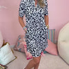 The dress is a versatile and stylish addition to your summer wardrobe. Featuring a flattering V-neck, short sleeves, and a playful A-line silhouette, this dress offers both comfort and flair. Its abstract print and practical side pockets add a modern touch, making it ideal for beach outings or casual days in the city.