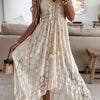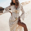 Bohemian Maxi Dress with Lace and Elegant Flared Sleeves