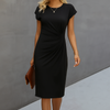 Add a touch of modern flair to your summer wardrobe with this chic solid-color dress. Featuring a flattering O-neckline, asymmetrical hem, and adjustable lace-up waist, it combines comfort with confidence for sunny days and casual occasions.