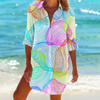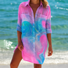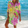 Bring vibrant flair to your beachwear with this loose-fitting, multi-color printed blouse, perfect as a bikini cover-up or a stylish vacation shirt. Designed with a turn-down collar, full-length sleeves, and a flowing long silhouette, this single-breasted blouse effortlessly combines comfort and fashion. The polyester-spandex blend ensures a lightweight, quick-drying fit ideal for beach days or breezy strolls.